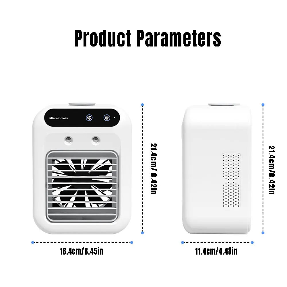 Mini Portable Air Conditioner – 2-in-1 Fan with Mist Cooling (Battery/USB Dual-Power, White)