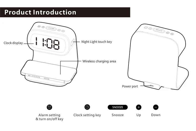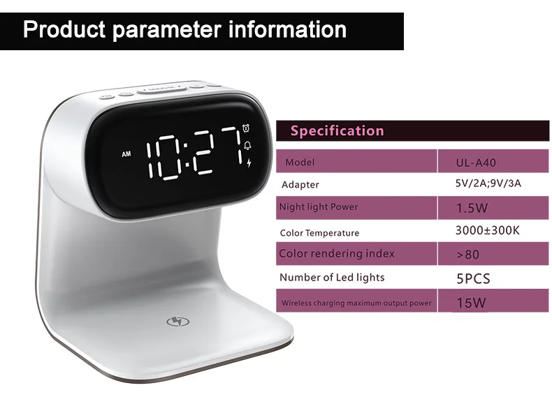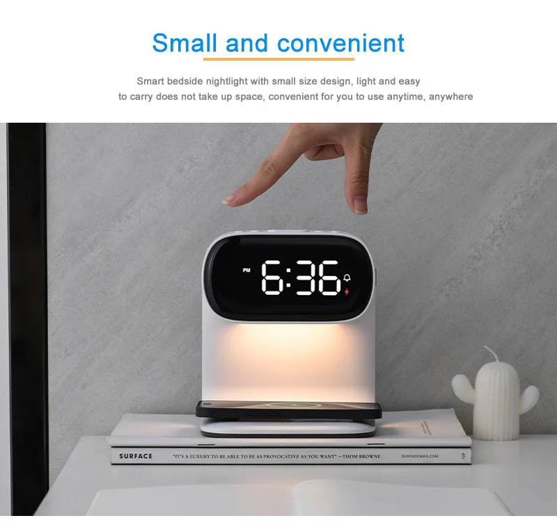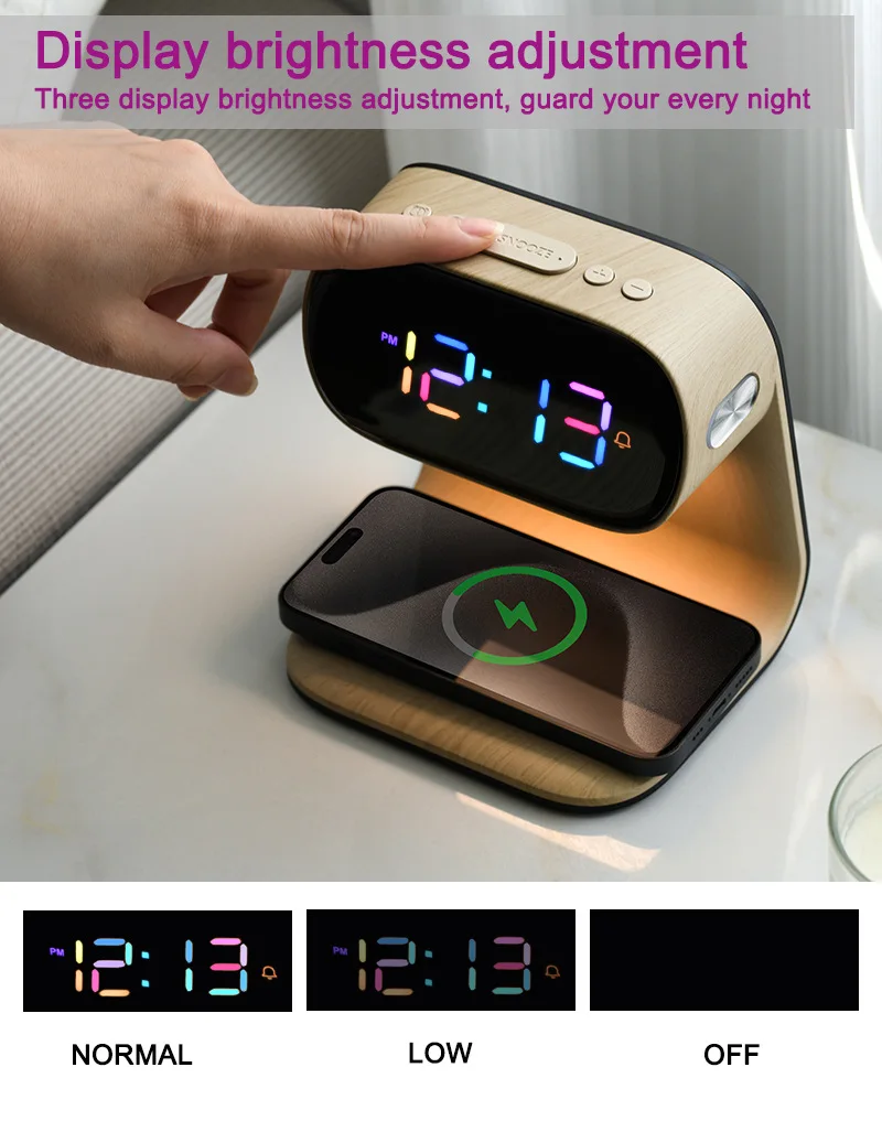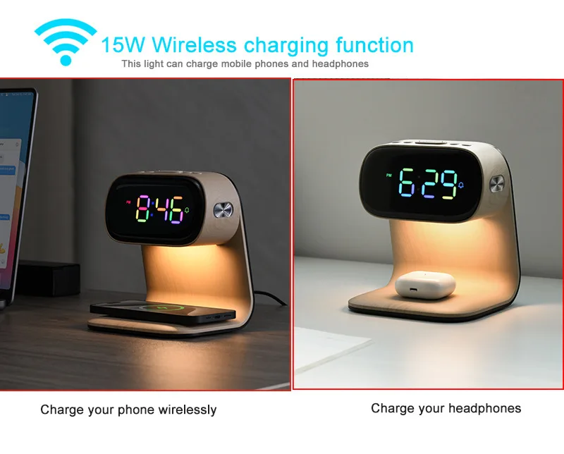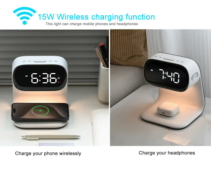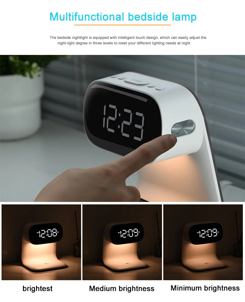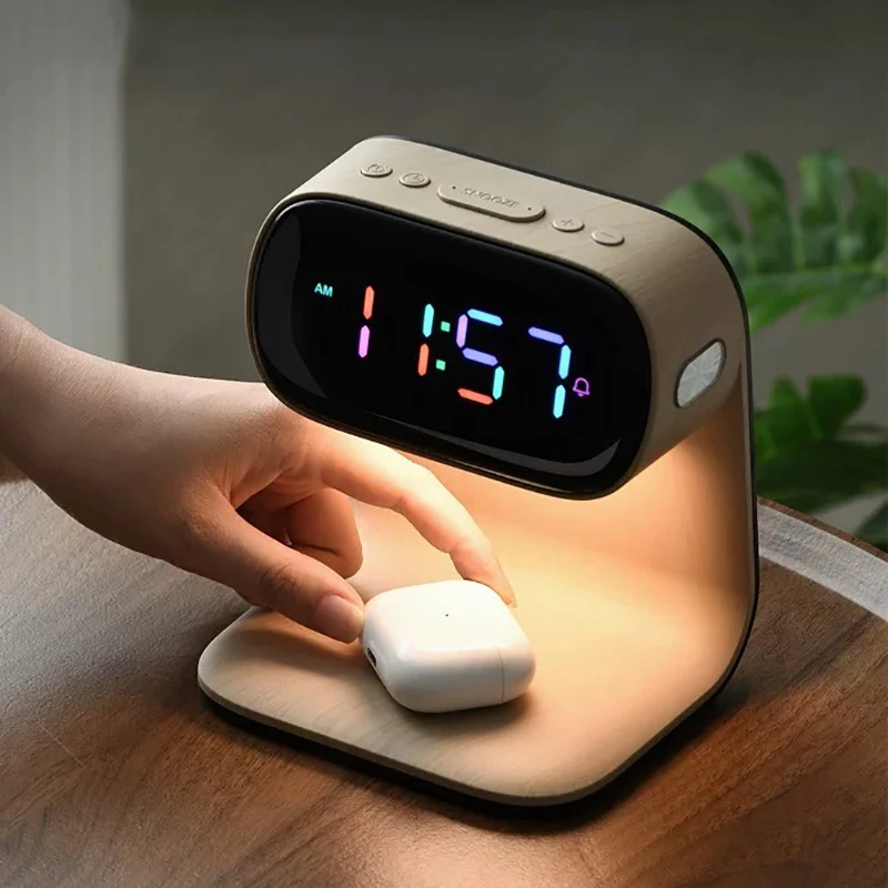 Multifunctional alarm clock with night light, wireless charging clock, holiday couple gift, three brightness adjustment clock
